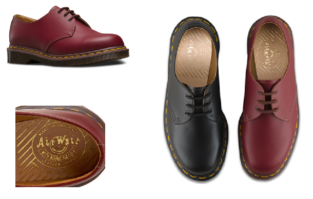 Zapato Dr. Martens original de cuero de grano completo de alta calidad, sus colores más populares son el negro y el rojo cereza.